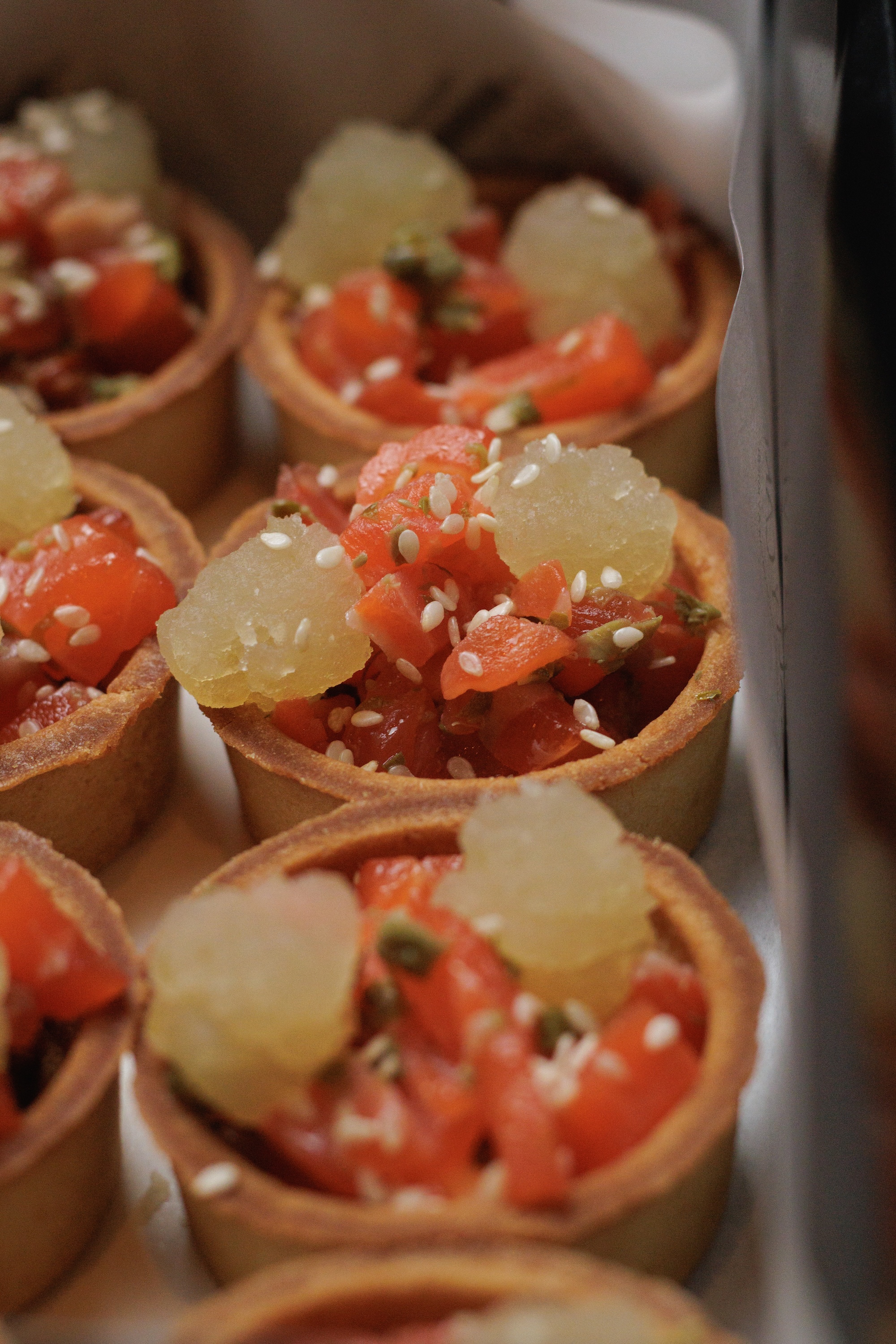 Корзинки з тартаром з лосося та гелем з лайма - 8 шт;